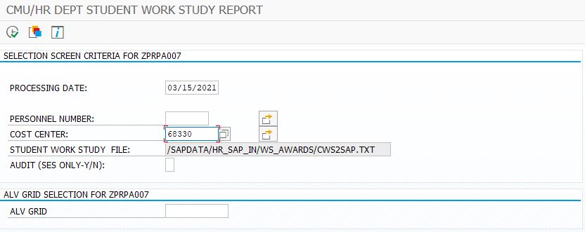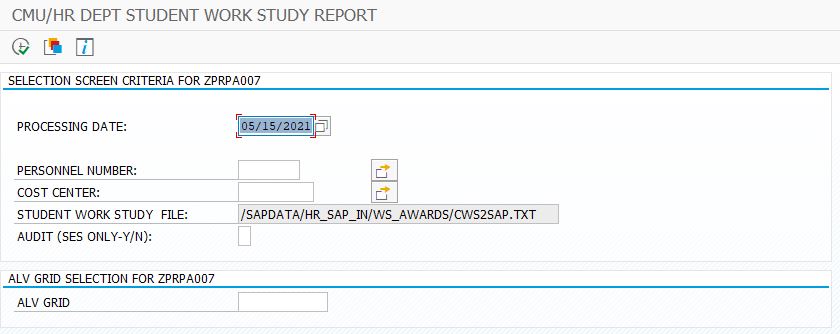 All SAP users have access to the Departmental Work Study Report which provides several pieces of vital information, including a student employee's Work-Study award amount and earnings-to-date. A Work-Study student will not appear on the report