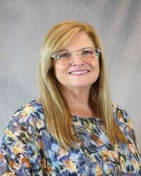 Professional headshot of Alexis Hadaway in dark blue attire against a gray background.