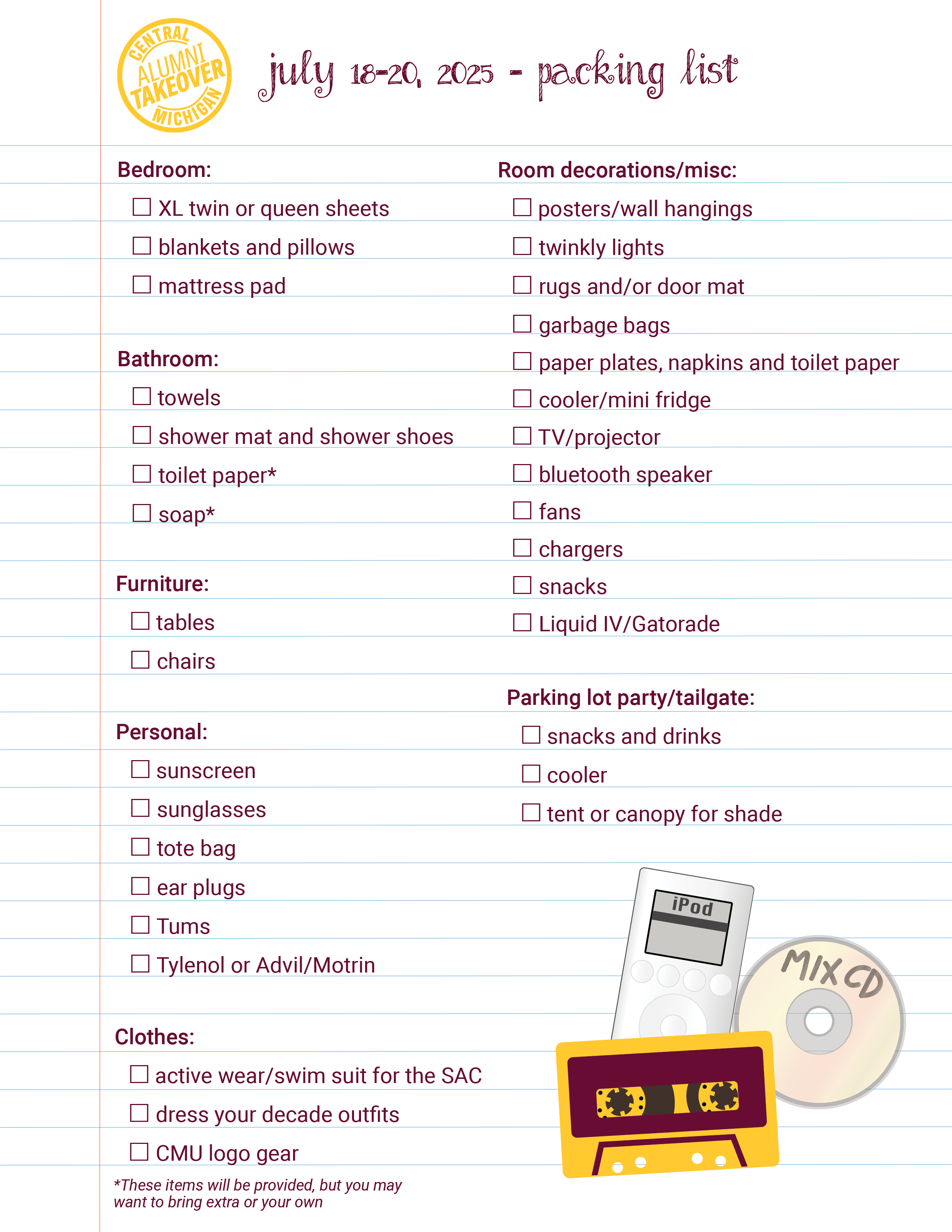From visiting your favorite campus locations to loading up on Central swag at the CMU Bookstore, alumni can enjoy the full experience as a CMU student again. At Alumni Takeover Weekend, you create your own adventure.