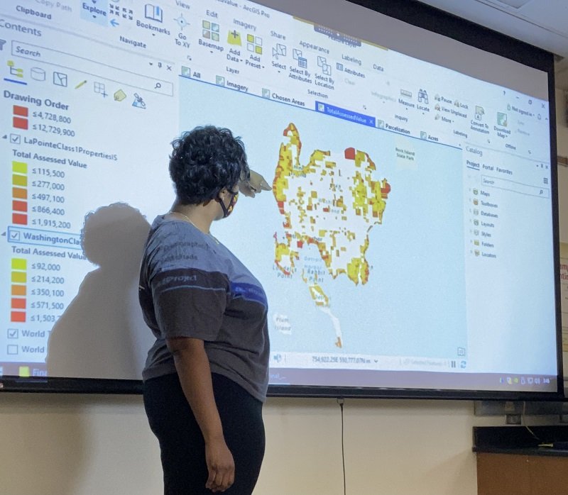Using ArcGIS Pro, a mapping system that gathers data such as property type, size, and monetary value, Akins will analyze the relationship between effective lake coastal management and property values in Wisconsin. Through her research, Akins hopes to highlight the beneficial capabilities of GIS, noting, “GIS is the perfect tool to display how we (humans and other living beings) connect with the Earth.”