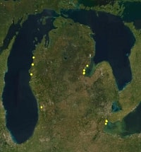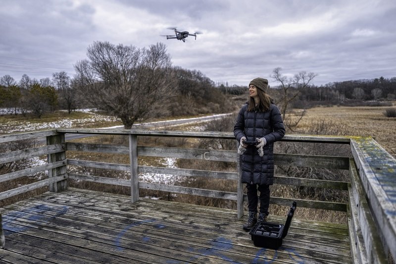 To assess muskrat abundance in wetlands with varying environmental factors, McElrath surveyed nine coastal wetlands among three different coastal regions of Michigan’s Lower Peninsula: Lakes Michigan, Huron, and Erie. Using drone aerial imagery, McElrath was able to count the number of muskrat mounds in the surveyed areas. Mounds house on average three to four muskrats and are built using surrounding vegetation such as cattails. From an aerial view, these mounds appear as “bull’s-eyes”, which McElrath could easily identify and use to estimate muskrat abundance. Once McElrath identified the mounds, she used pre-existing data about the wetland type, surrounding forest and urban land cover, and the ratio of vegetation to open water to better understand how environmental variables impact muskrat abundance.