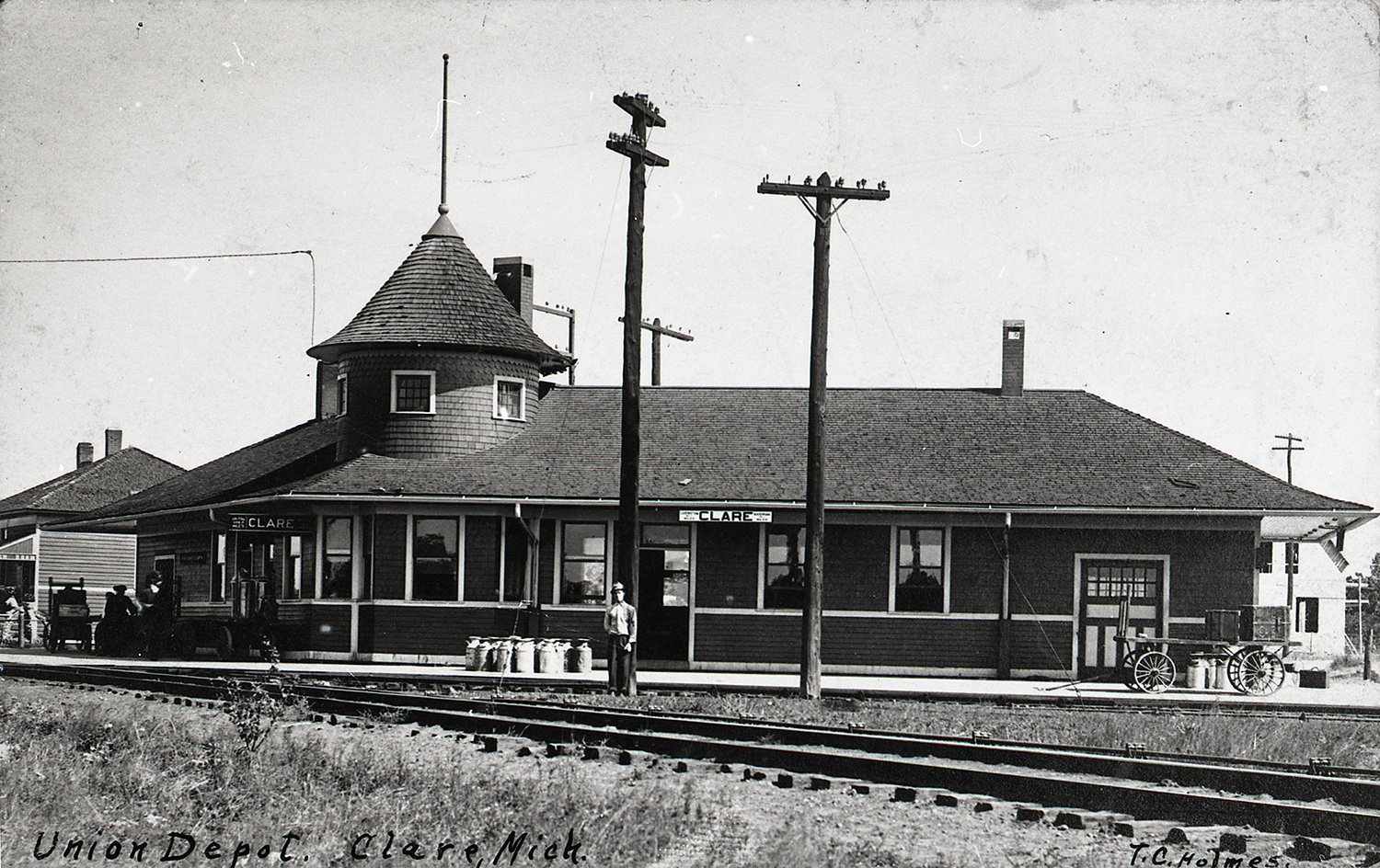 Explore historical photos of the stations and depots on the Ann Arbor, the Pere Marquette, the Grand Rapids and Indiana, the Duluth and South Shore the Grand Trunk, the Michigan Central, and the Detroit and Mackinac lines. (Image: Clare Union Depot pictured from the interactive map of the Ann Arbor Railroad line)