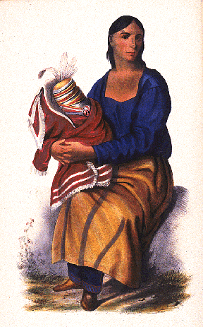 Both Lewis and McKenney realized that there was a profit to be made in selling Indian-related material. In 1827 McKenney published Sketches of the Tour of the Lakes.[28]McKenney's offering, was a traditional book that included a large number of images created by Lewis. Among the illustrations were a few individual portraits, geographical features of the Great Lakes , traditional Native American villages, and other scenes of the cultural environment such as Native American gravesides and Indian canoes. Some of the images in McKenney's book seem to be early drafts of what Lewis would publish a decade later in his own work. Lewis' publication, The North American Aboriginal Port-Folio , was very different than McKenney's. Rather than a book, Lewis offered the public a series of color lithographs, usually portraits.
